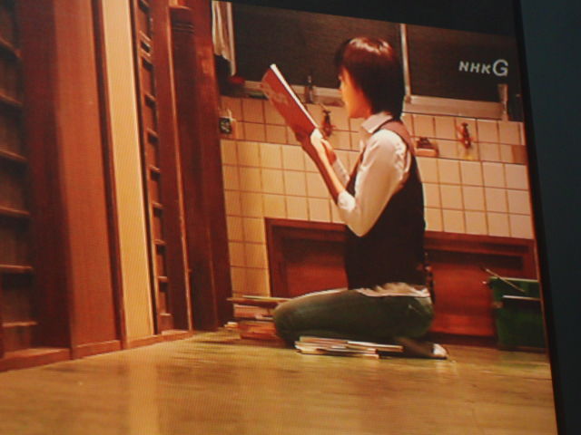 ¡¡²èÁü¤ÏÅ·Ì¤ó¤ÎÉô²°¤ÎÁ°¤Ç³¨ËܤòÆÉ¤ß¤¢¤²¤ë½ã¤Ê¤Î¤Ç¤¹¡££²ËçÌܤϻ䤬¥Ç¥¸¥«¥á¤Ç¥Æ¥ì¥Ó¤Î¥â¥Ë¥¿¡¼¤ò¼Ì¤·¤Þ¤·¤¿¡£